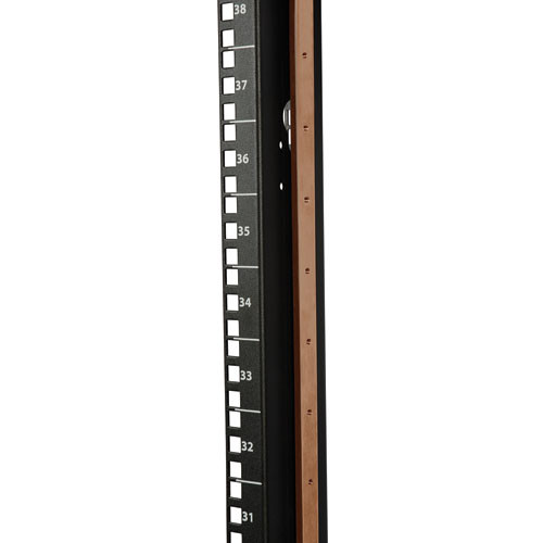 Individually grounding rackmount equipment allows a surge or overload to take a path directly to the ground rather than through other equipment. This can be crucial for protecting valuable data and expensive equipment in the case of an electrical emergency. The SRGROUND can be used in racks up to 42U in size and has pre-drilled holes at every U for individual equipment grounding.