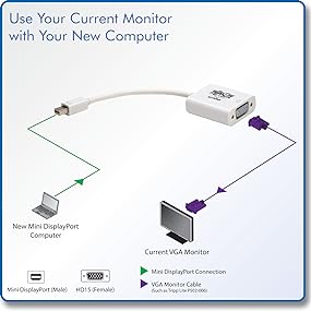 This cable adapter helps you save money by making your current VGA monitor compatible with a Mini DisplayPort-equipped computer. Active digital-to-analog circuitry, premium double shielding and quality manufacturing ensure a clean, consistent video signal.