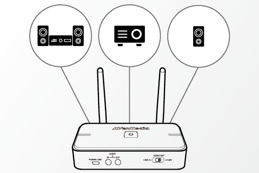 AVerMic AW315 mode selector switch provides a simple selection in both Line out and Mic out modes. The Line out mode is suitable for common speaker systems with 3.5 mm Line In jacks, such as PC speakers or projectors with 15W or higher power speakers. The MIC out mode is suitable for classrooms with built-in audio systems and 6.3 mm microphone jacks.