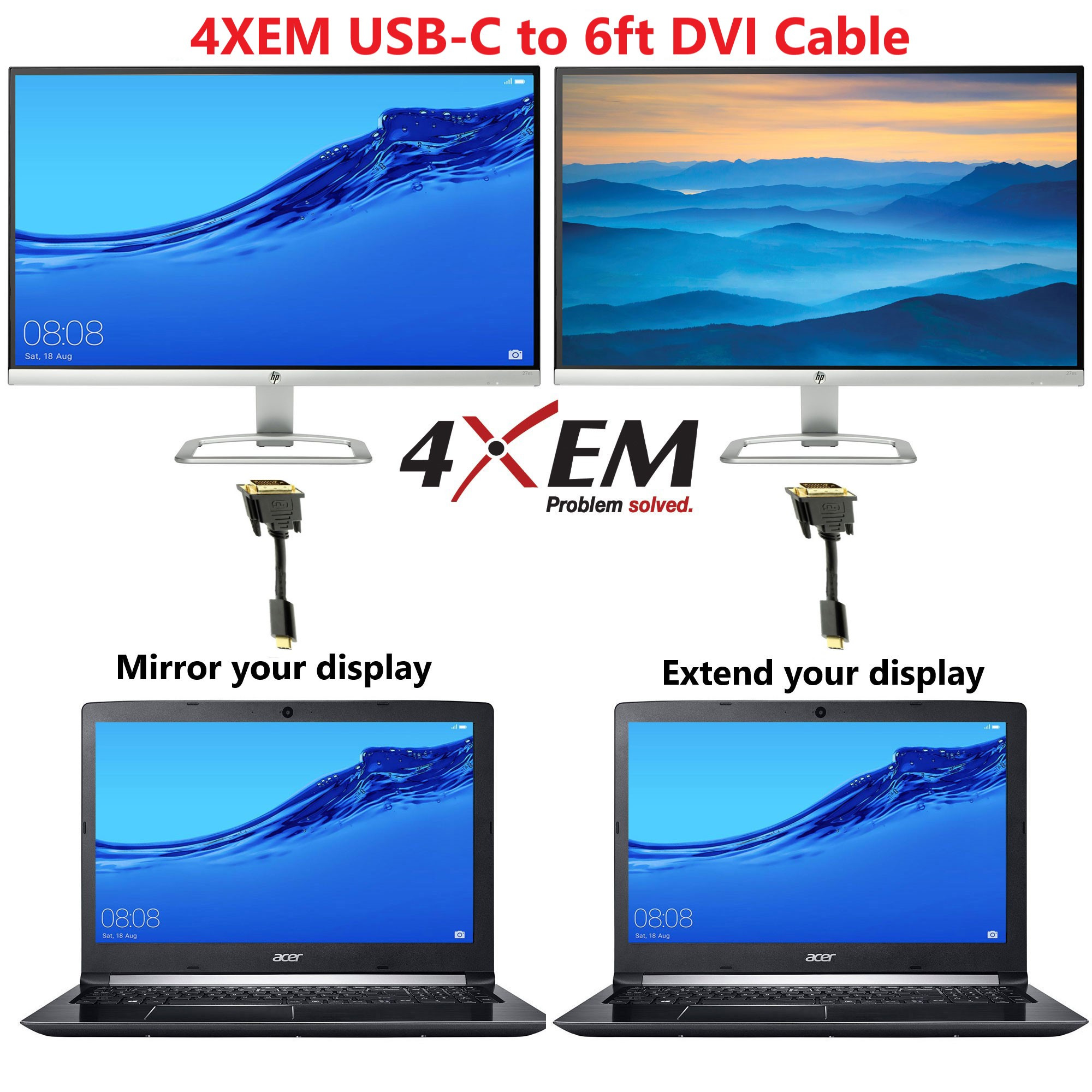 4XEM's USB-C to DVI 6ft Cable - 1920X1200-USB Type C (Thunderbolt 3 Compatible) to DVI Converter for MacBook Pro, Dell XPS 13/15, HP Spectre x360, Lenovo Yoga 910 & More,