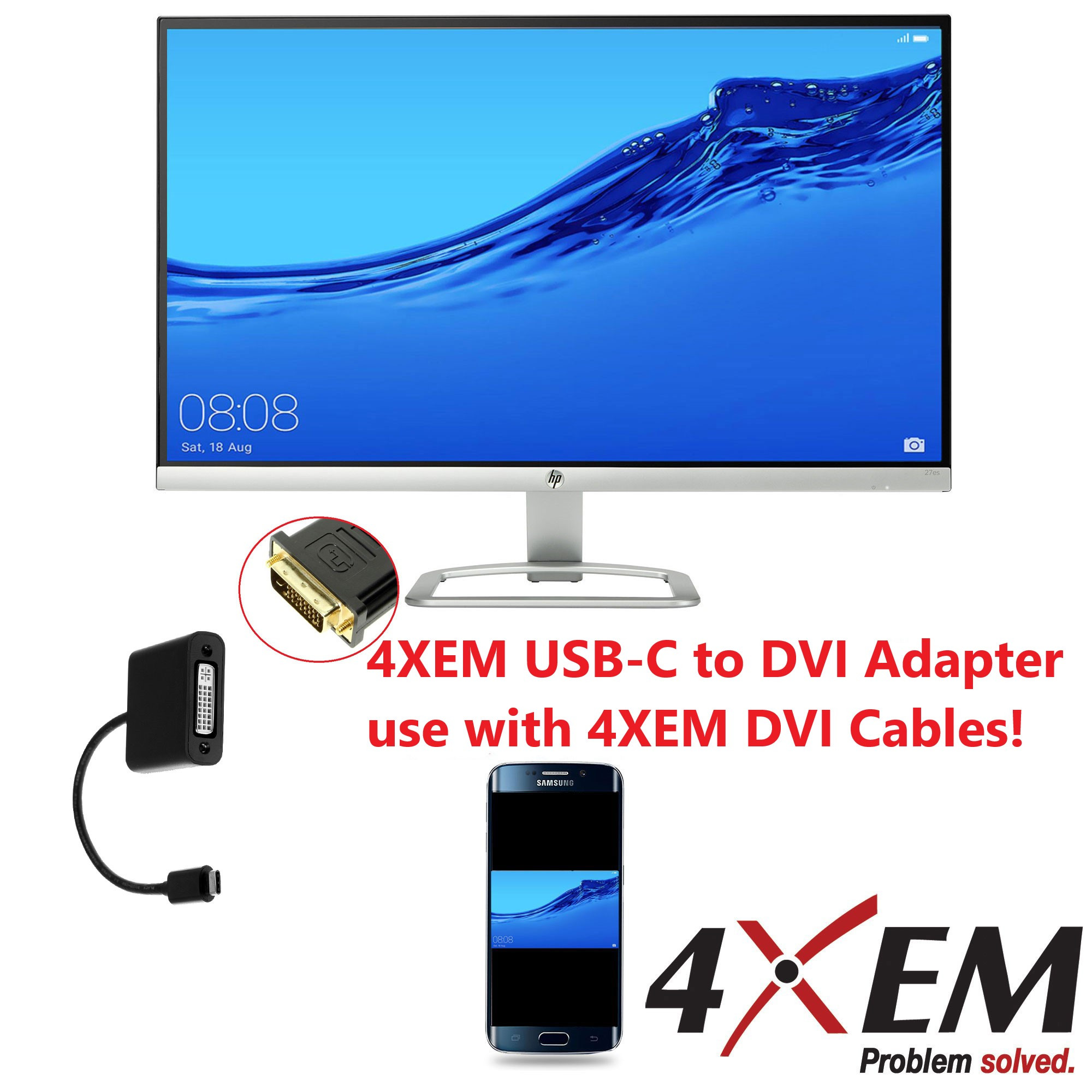 4XEM's USB-C to DVI Adapter - black 20cm, 1920X1200-USB Type C (Thunderbold 3 Compatible) to DVI Converter for MacBook Pro, Dell XPS 13/15, HP Spectre x360, Lenovo Yoga 910 & More,