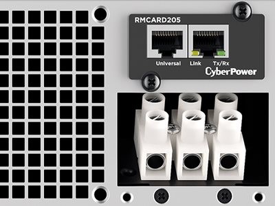 The CyberPower RMCARD205 remotely manages, monitors, and controls CyberPower UPS systems via a standard web browser, command line interface (CLI), or network management system (NMS) connection.