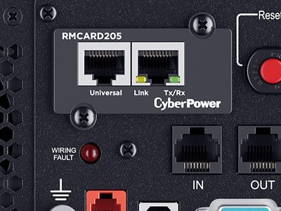 The CyberPower RMCARD205 remotely manages, monitors, and controls CyberPower UPS systems via a standard web browser, command line interface (CLI), or network management system (NMS) connection.