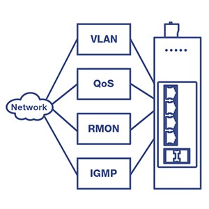 Integration FlexibilityManaged layer 2 features include VLAN, IGMP snooping, QoS, RMON, SNMP trap, and syslog for monitoring and flexible network integration. |