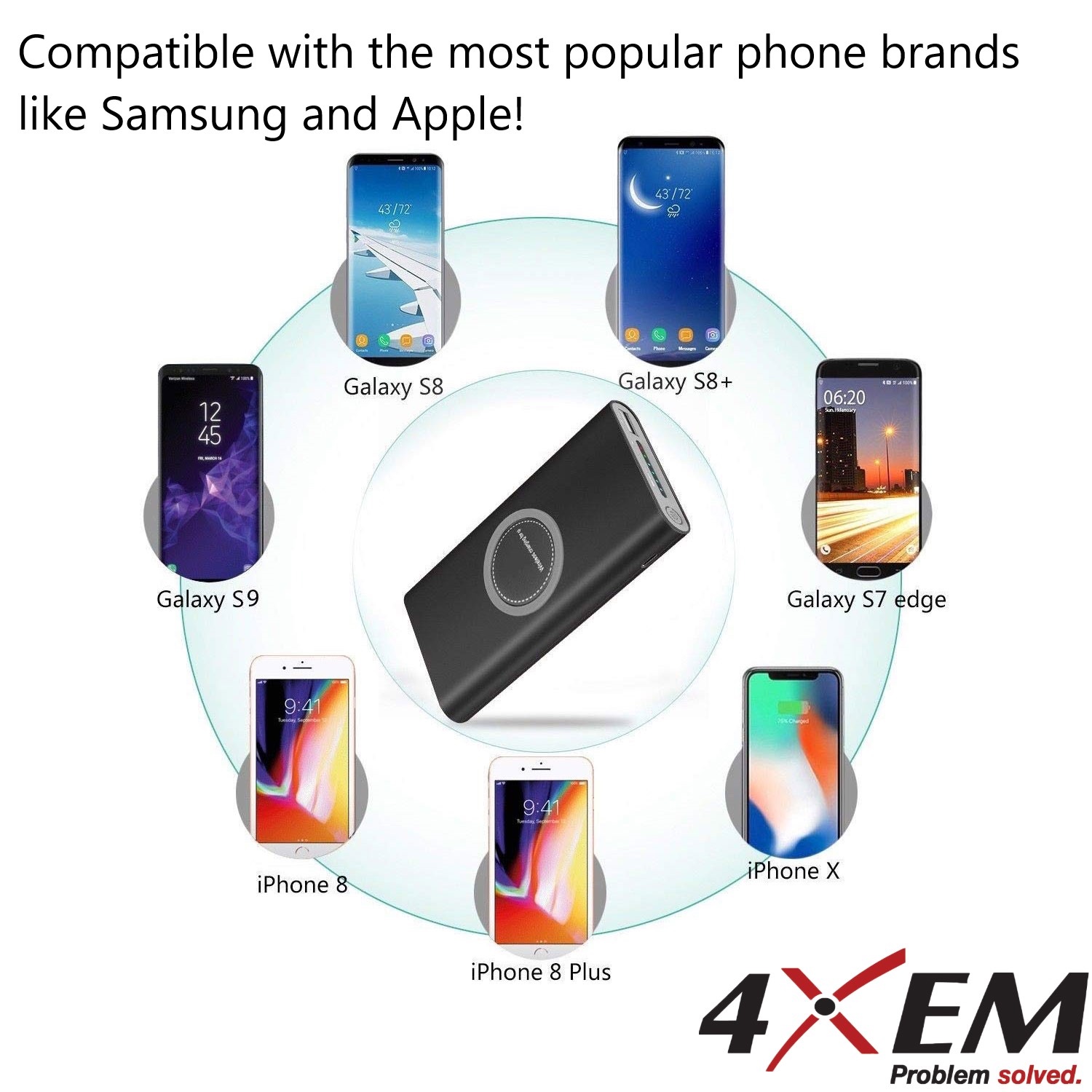 Charge any one of your Samsung Galaxy Note 5/S6/S6 Edge/S6 Edge+/S7/S7 Edge/S8/Note 8 * Google Nexus 5/6/7 *HTC Droid DNA, 8X * LG G3/G4, iPhone 8/8 Plus/X with our Qi fast charging wireless power banks available in both black and grey.