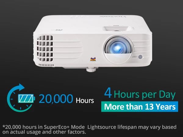 An energy-saving SuperEco ™ feature reduces power consumption and extends the lamp life by up to 20,000 hours.*