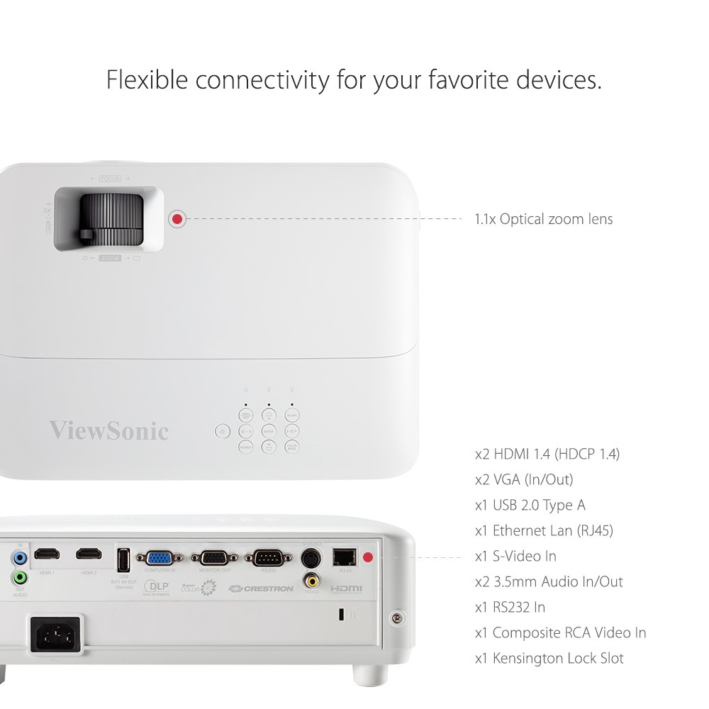 Designed with two HDMI ports, this projector is perfect for connecting to any HDMI-enabled device, and can display 3D images directly from 3D Blu-ray players. 3D images can be viewed with optional ViewSonic PGD-350 Shutter Glasses, or any other compatible 3D glasses.