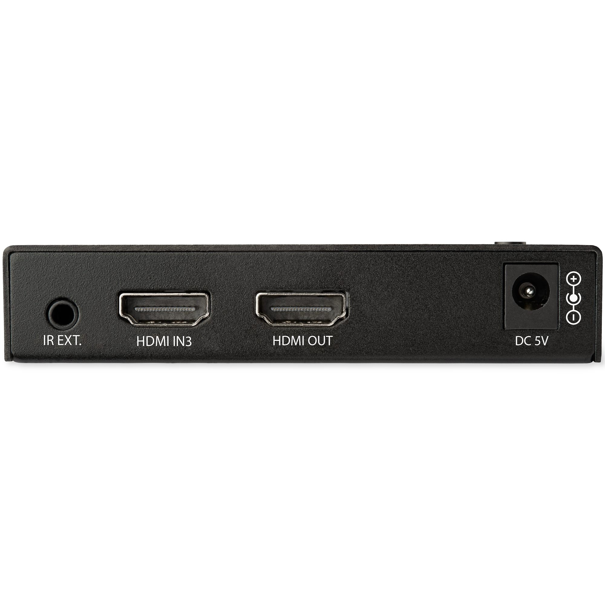 This automatic HDMI switch also supports manual operation, using the included IR remote control or the built-in front-panel toggle switch.