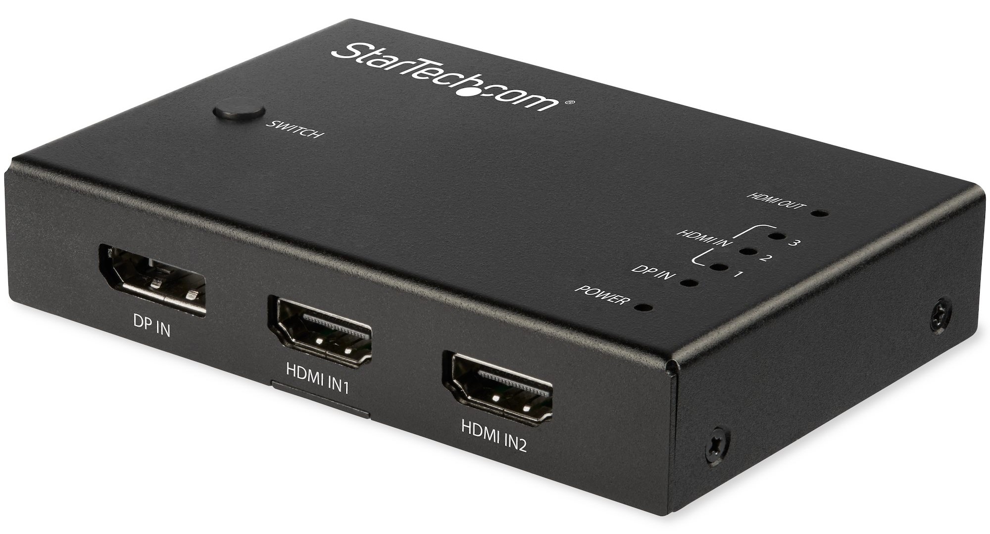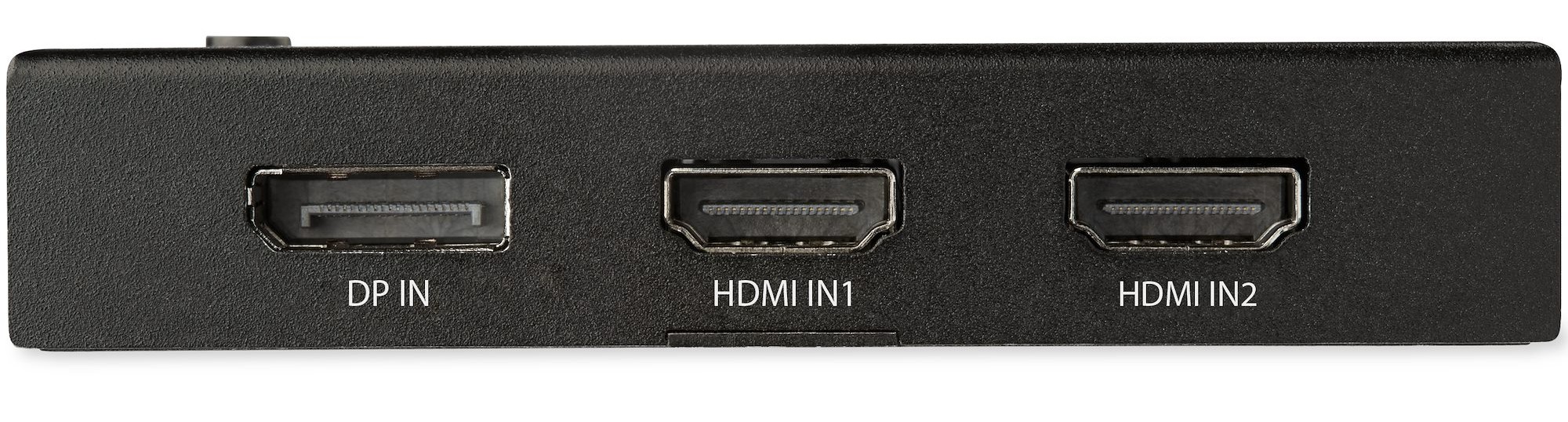 This multi-port video switcher offers four input options, including one DisplayPort and three HDMI ports, enabling you to switch from one of four sources to your HDMI video display. The mix-and-match input options provide users with a flexible solution so they are not limited to one specific input.