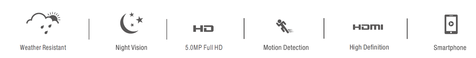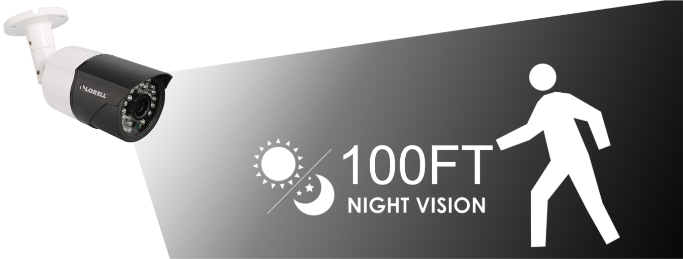 Infrared night vision is an essential feature for security camera, because darkness make intruders more confident. Bullet camera has 36pcs IR LEDs with 100ft night vision, Dome one has 24 pcs IR LEDs with 65ft.