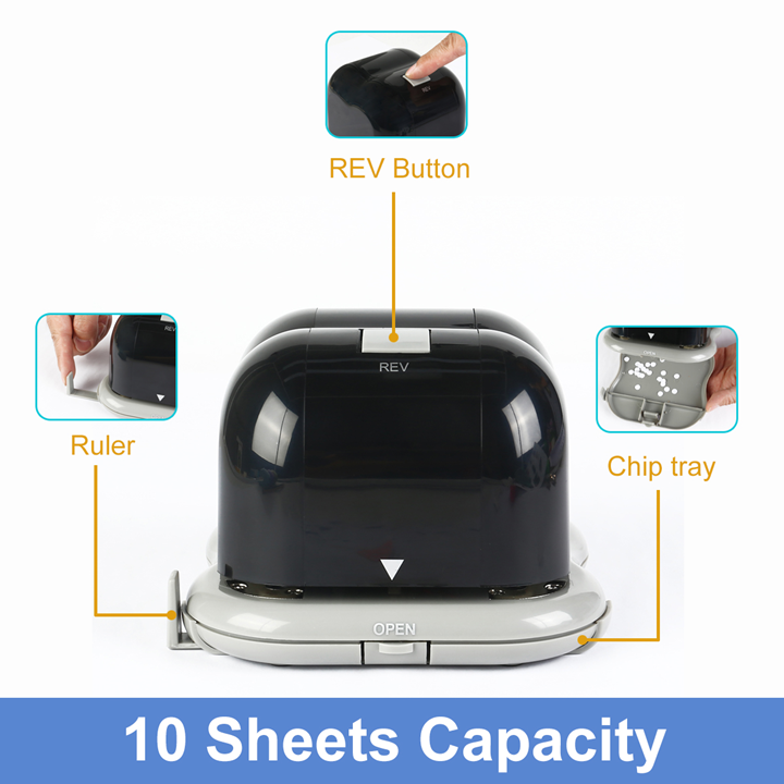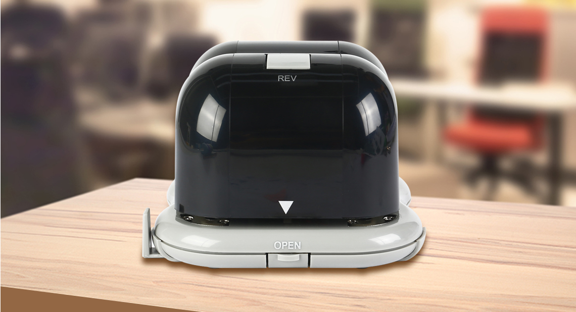 Slide paper into the slot and this gadget will punch automatically to give you a perfect tidy and neat hole punch result.