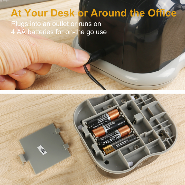 2 options for power supply - with provided power outlet or 4 AA batteries (not included)