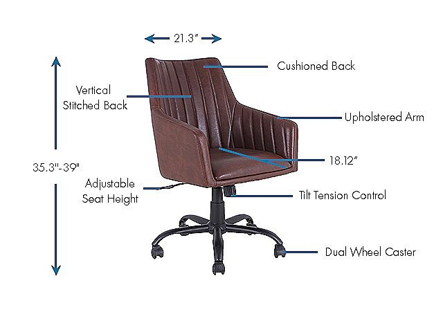 The Lorell Bonded Leather Upscale Chair cradles you with comfort in style. The cushioned seat and back and the low profile arms are upholstered in classy bonded leather. The back features a sophisticated vertical stitched design. The chair also features an adjustable tilt mechanism which allows you to recline the way you want. The five star metal base is powder coated for durability and equipped with dual wheel casters for smooth rolling mobility.