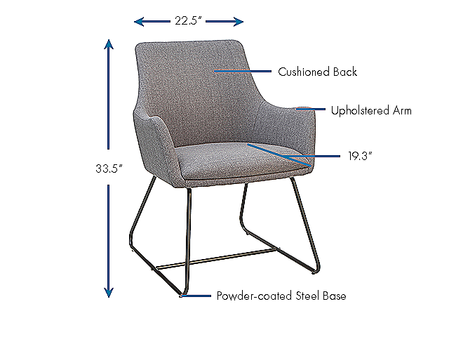 The Lorell Gray Flannel Guest Chair with Sled Base has low profile arms and add a sleek and professional look to your reception area or your office. Inspired by a mid-century modern design, the Guest Chair features a steel sled base which is powder coated for durability. The seat and back are cushioned to maximize comfort and are upholstered in stylish gray flannel.
