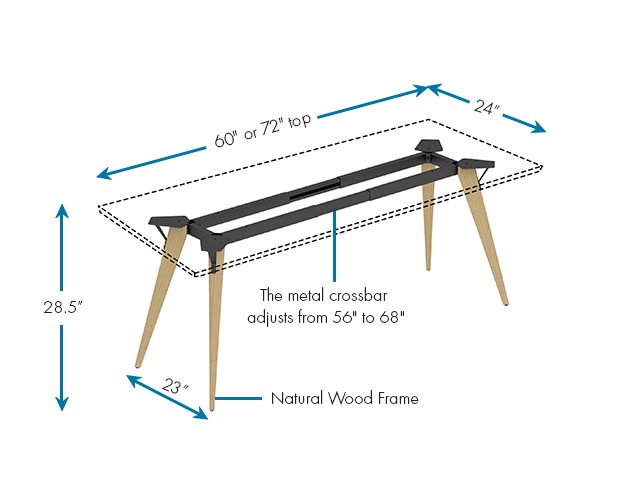 LLR16244 features adjustable leveling feet and telescoping metal crossbars for support and stability. This sleek desk frame supports 60” wide x 24” deep and 72” wide x 24” deep rectangular tops (sold separately).