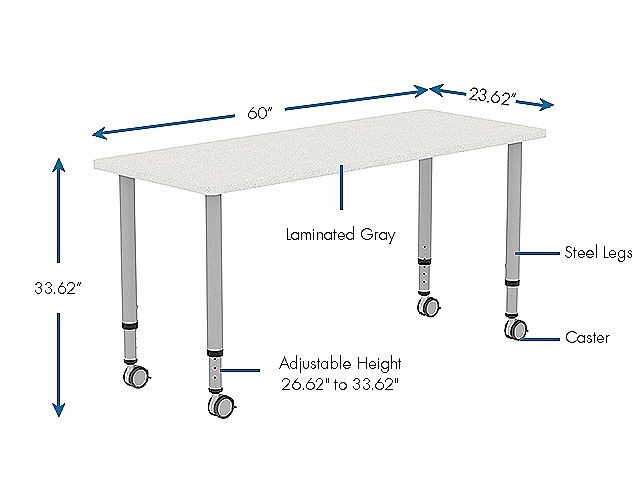The durable laminate with edge banding offers a tough work surface. The 60" wide and 26.62" deep table top laminate is available in two colors, Gray and Maple.