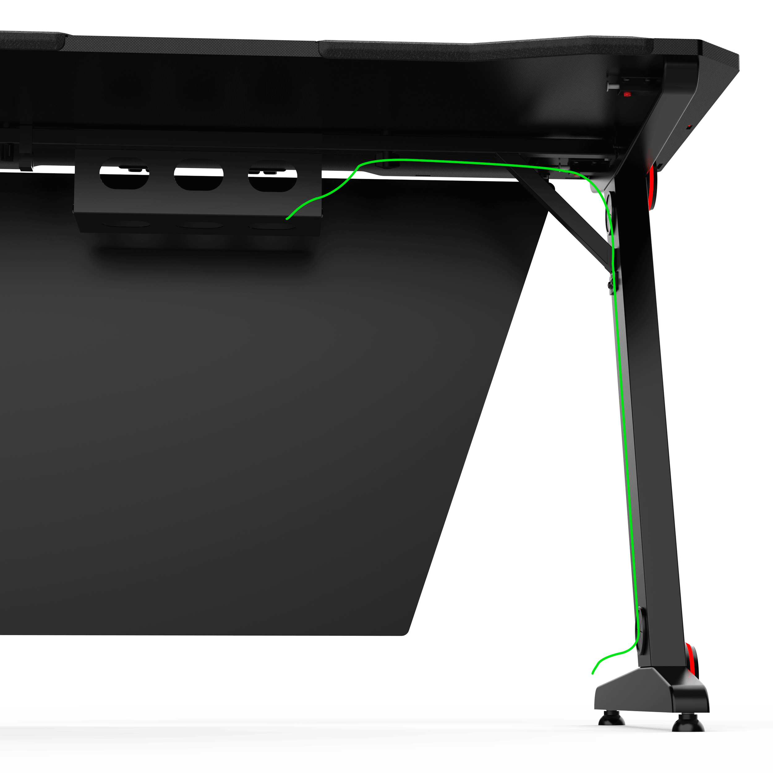 RGB LED lighting inside leg frame and around desktop. Use the remote control to change colors and control the brightness