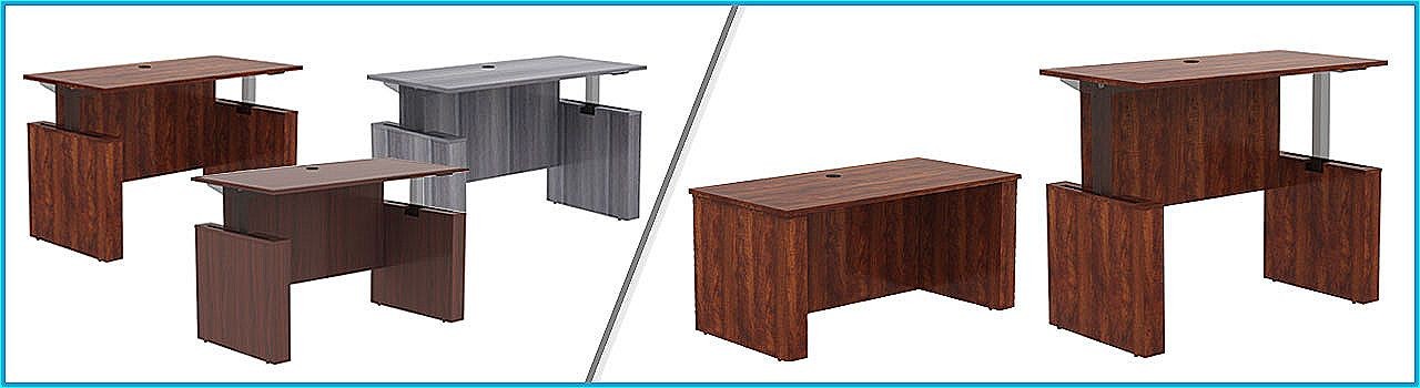 The Sit-to-Stand Desk Shell comes in three attractive colors, Cherry, Mahogany and Weathered Charcoal.