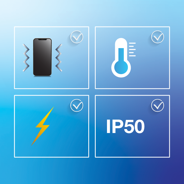 Rated for shock (EN 60068-2-27), freefall (EN 60068-2-32), and vibration (EN 60068-2-6)