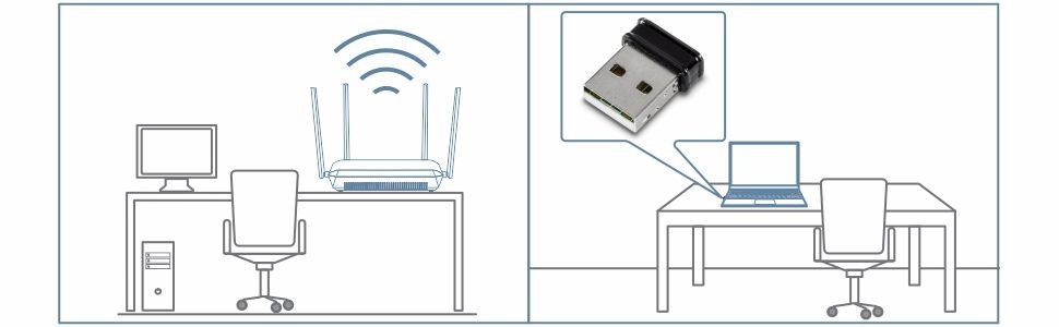 Connect your laptop or computer to high-speed WiFi N150 to download files, play games, stream video, and more