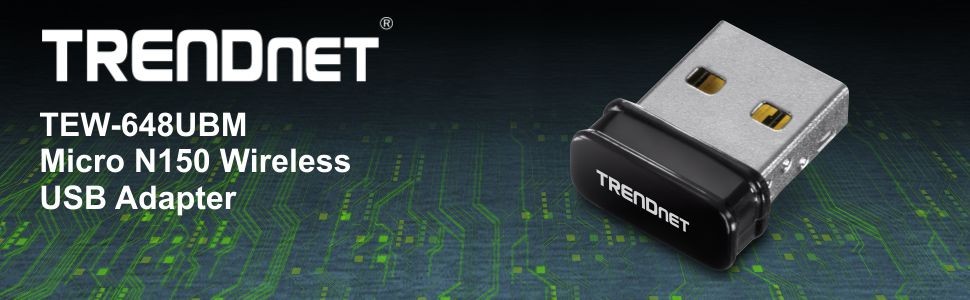 TRENDnet's Micro N150 Wireless USB Adapter, model TEW-648UBM, connects a laptop or desktop computer to a high-speed WiFi N network. Seamlessly stream video, download files, and play games with this ultra-compact wireless n adapter. WiFi Multimedia Quality of Service prioritizes important video, audio, and gaming traffic.