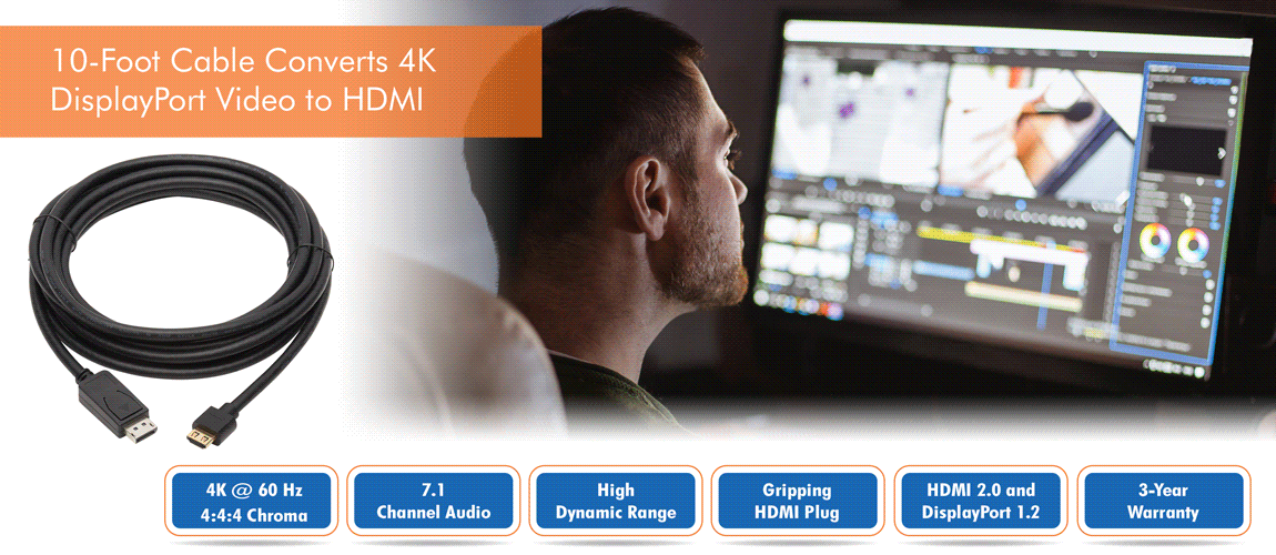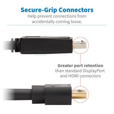 Having a cable come loose accidentally can mean costly and time-consuming signal loss. The latching DisplayPort and gripping HDMI connectors help you avoid such danger, protecting your audio/video transmission by maintaining a secure link without failure.