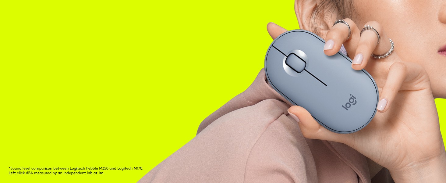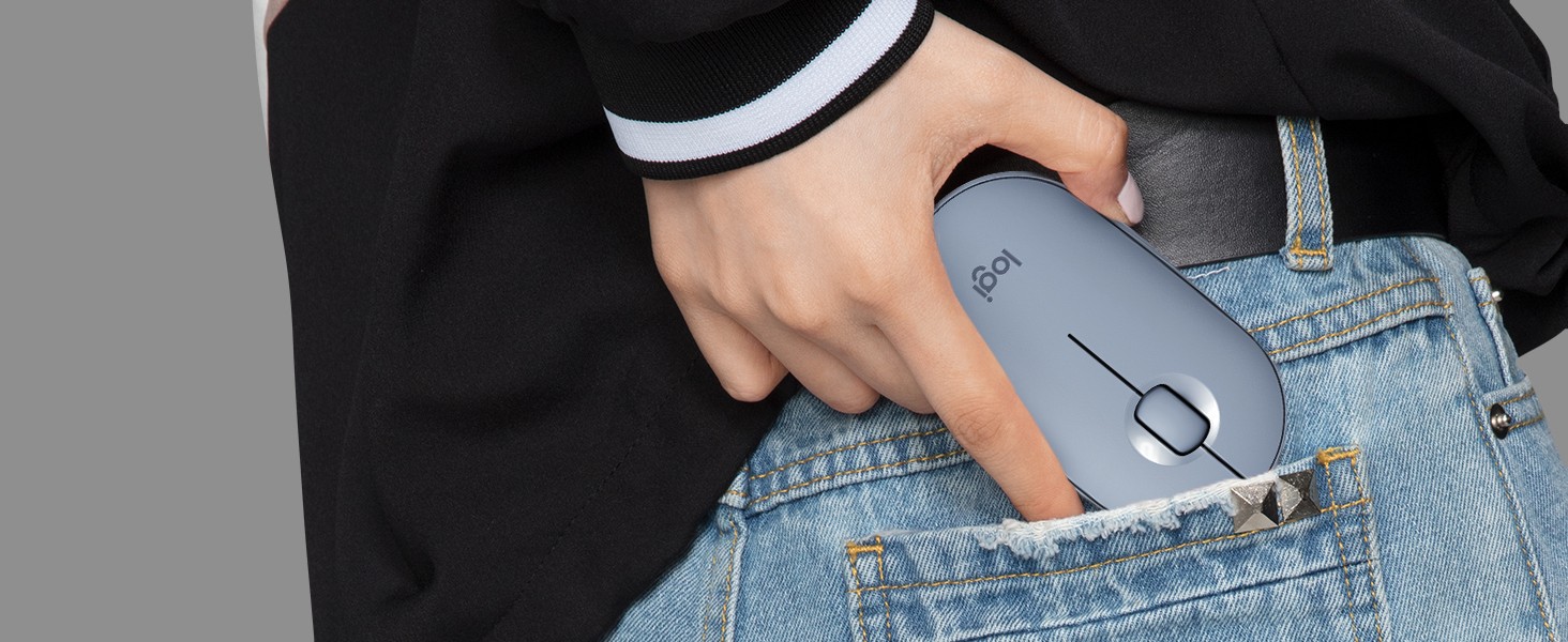 Choose Logitech Pebble M350 in rose or blue grey to match the rest of your accessories or bring a touch of color to your desk setup.