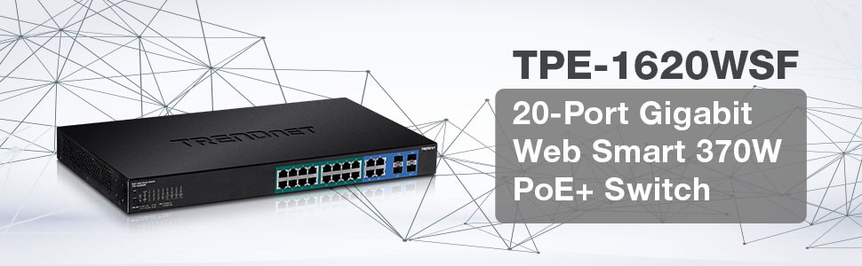 PoE PowerThe 370W total PoE power budget on this high-power PoE managed switch supplies 16 Power over Ethernet devices with up to 30W per port |