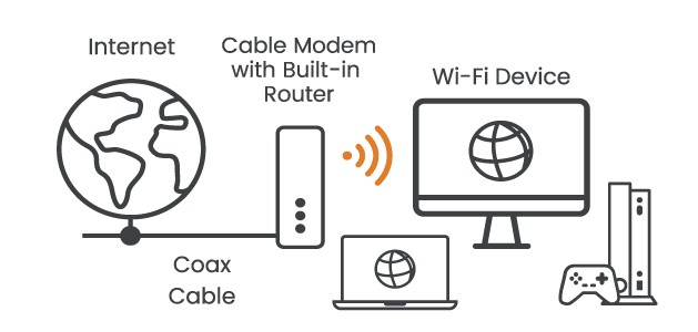 A Wi-Fi cable modem is a cable modem and a Wi-Fi router in one device. It's a convenient, space-saving device that provides the connection to the internet and the ability to share it with all of your devices.