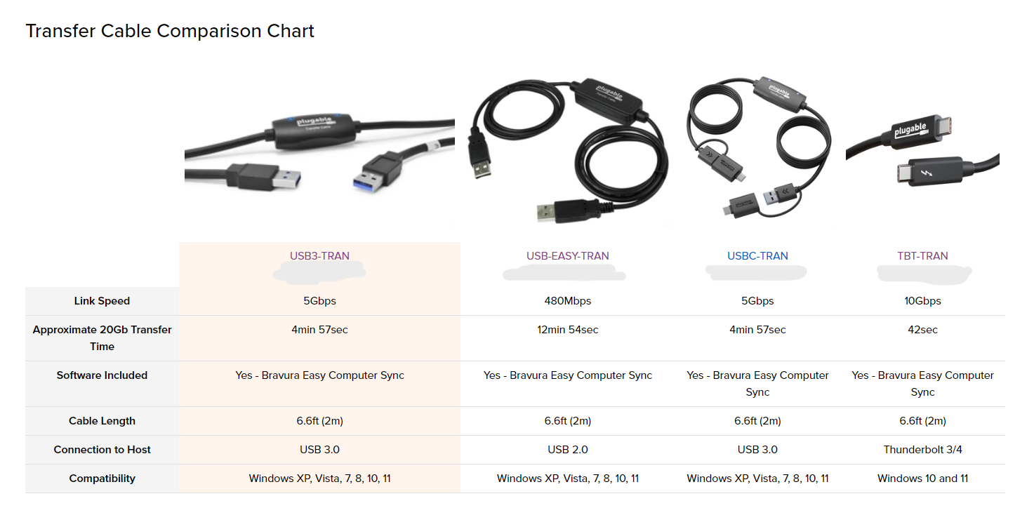 Featuring USB 3.0 SuperSpeed Type-A on both ends, and a Prolific PL-257A1 chipset, our Transfer Cables provide transferring without the storage limitations you’d find by using discs or drives. The Plugable USB3-TRAN works up to three times faster than our USB 2.0 Transfer Cable if both computers have USB 3.0 ports.