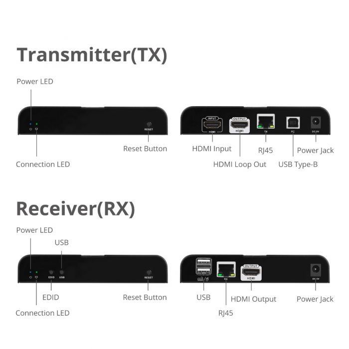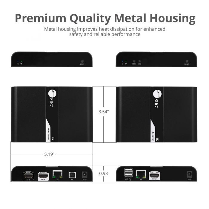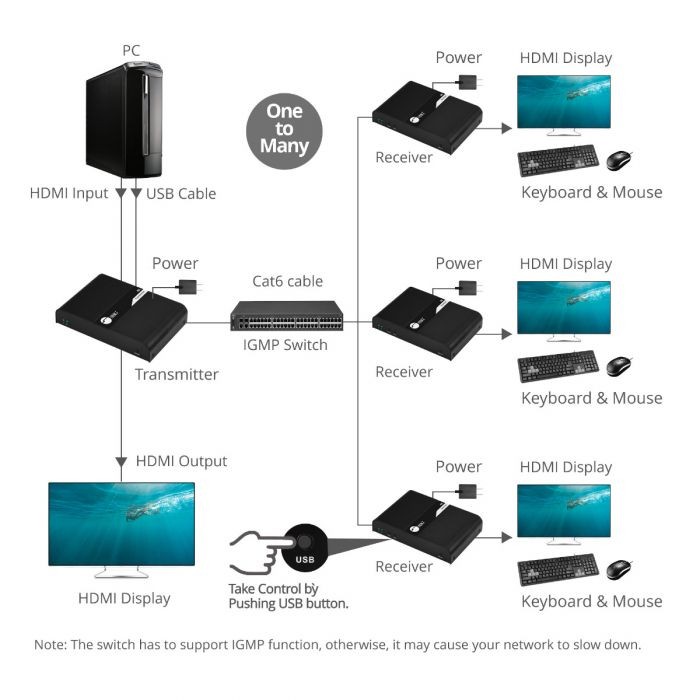 Extends HDMI and USB signals up to 328ft over Cat6 cable with nearly zero latency