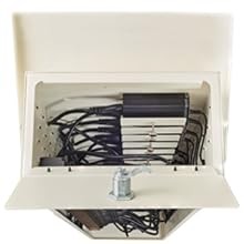 Adjustable shelves in the rear compartment hold device power adapters. When populating the tower, start at the bottom and work up, leaving any unused outlets and shelves near the top of the tower.