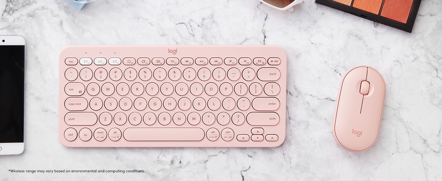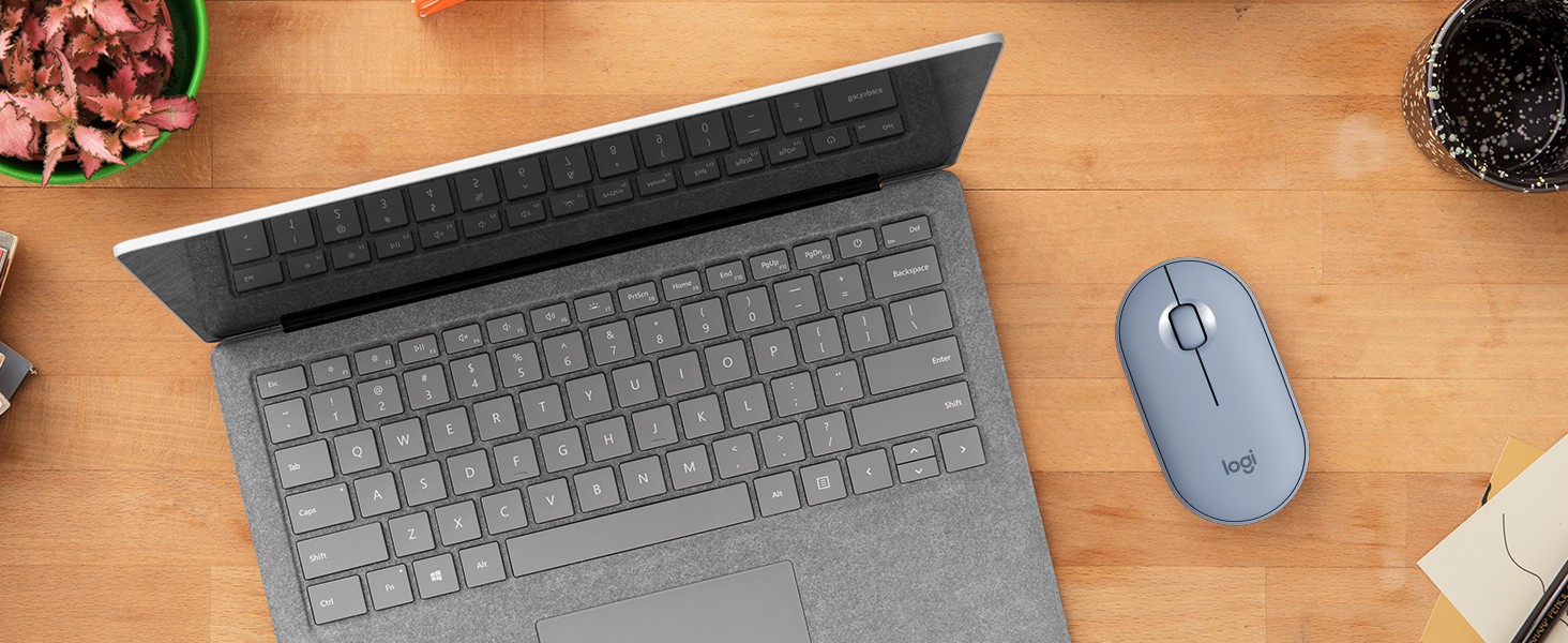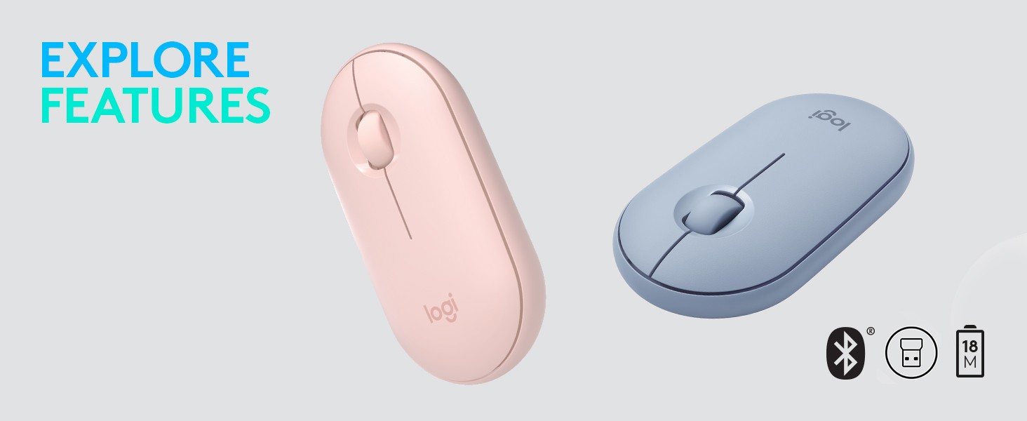 Choose Logitech Pebble M350 in rose or blue grey to match the rest of your accessories or bring a touch of color to your desk setup.