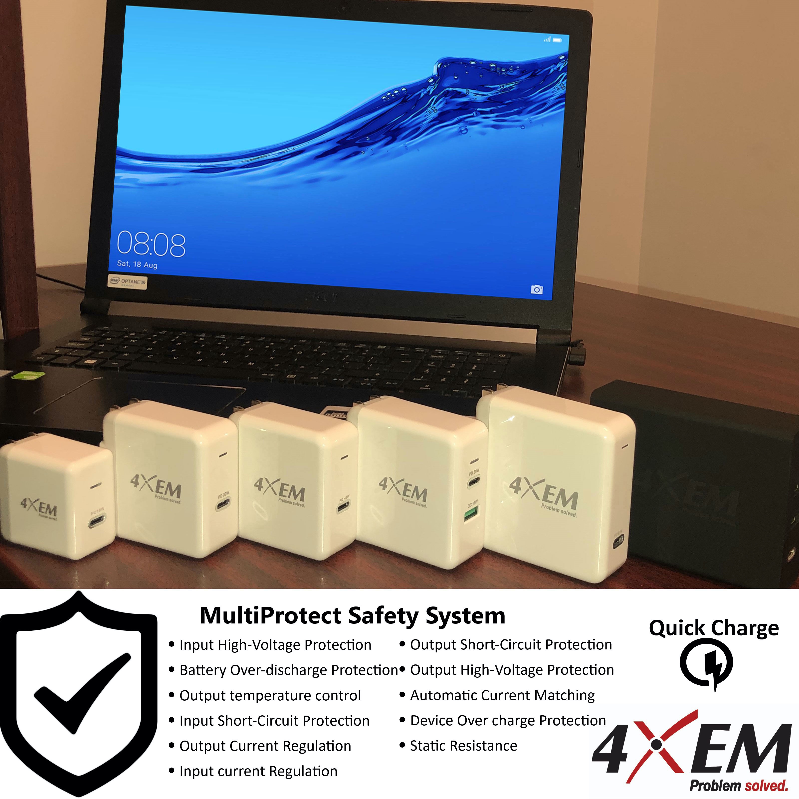 All our 4XEM wall chargers come with our multi protect safety system. Never overcharge your battery with our device over charge protection. Worry free charging with output temperature control and input short circuit protection.