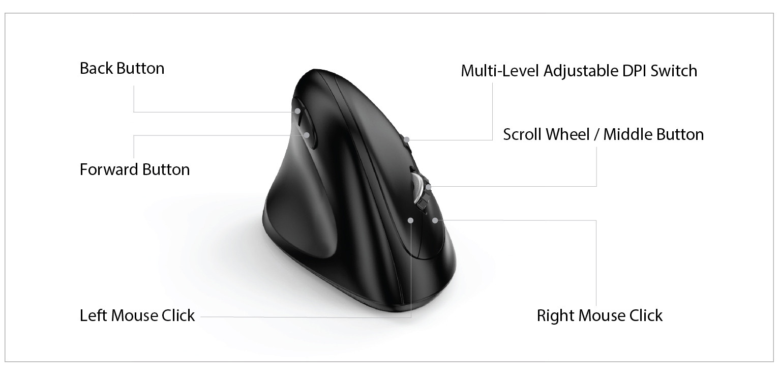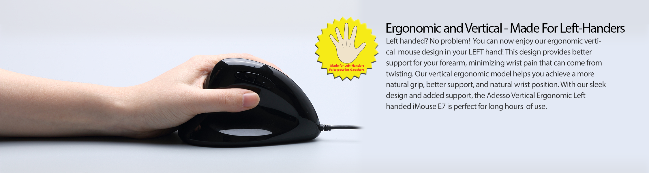 Our Left-Handed vertical ergonomic design helps you achieve a more natural grip, better support, and natural wrist position. With our sleek design and added support, the Adesso Vertical Ergonomic iMouse E7-TAA is perfect for long hours of use.