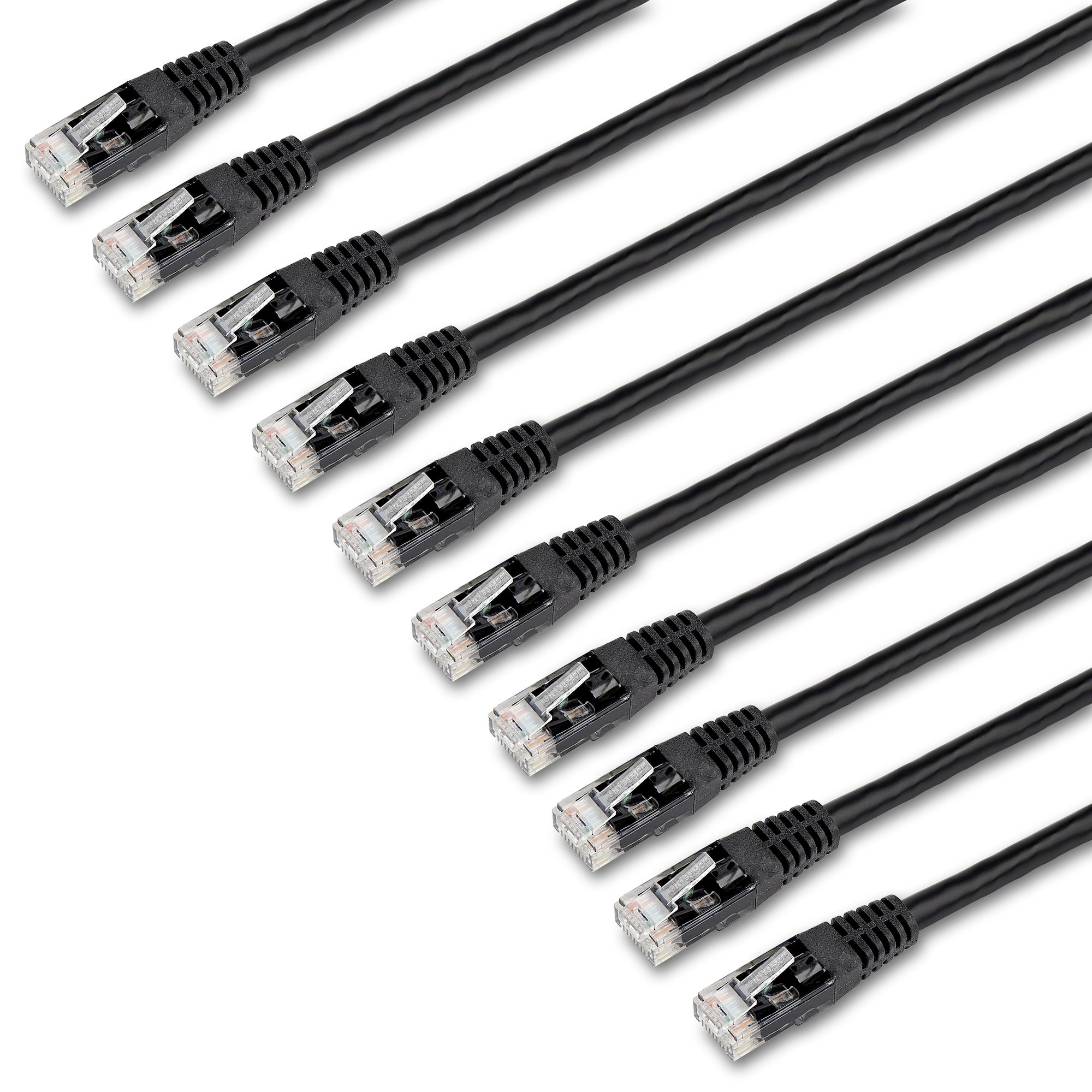 For trouble-free cable runs, these durable cables feature molded boots which offer strain relief by stopping the RJ45 connectors from bending at sharp angles. This reduces the risk of cable damage, which could decrease network connectivity and performance.