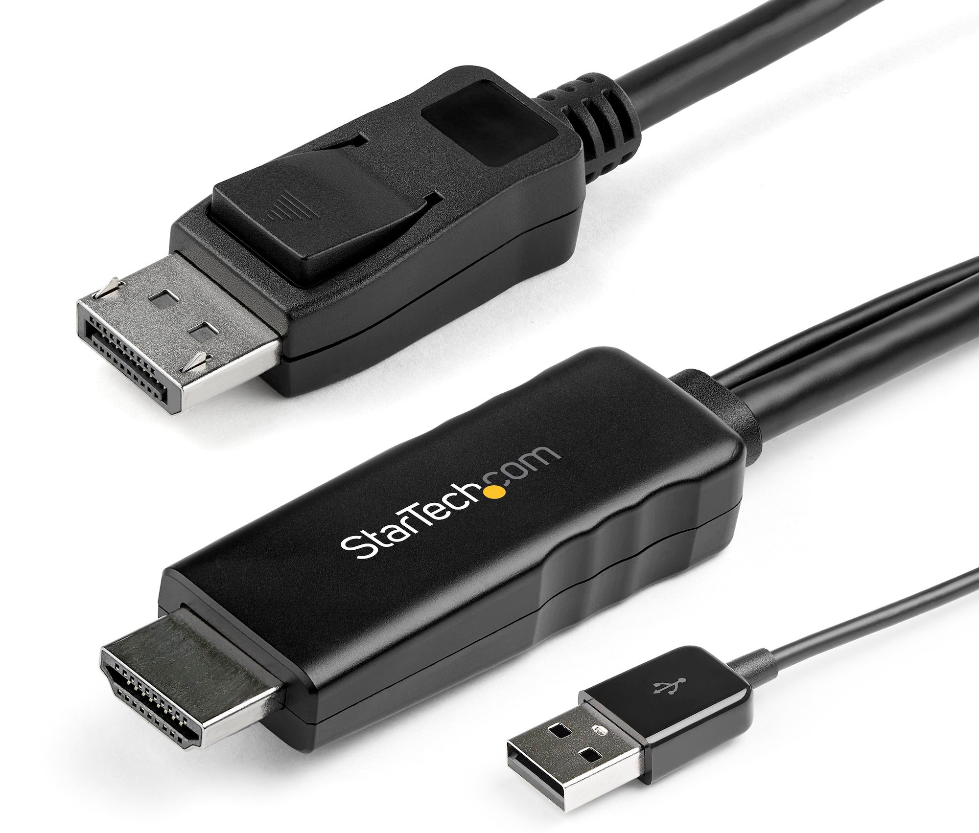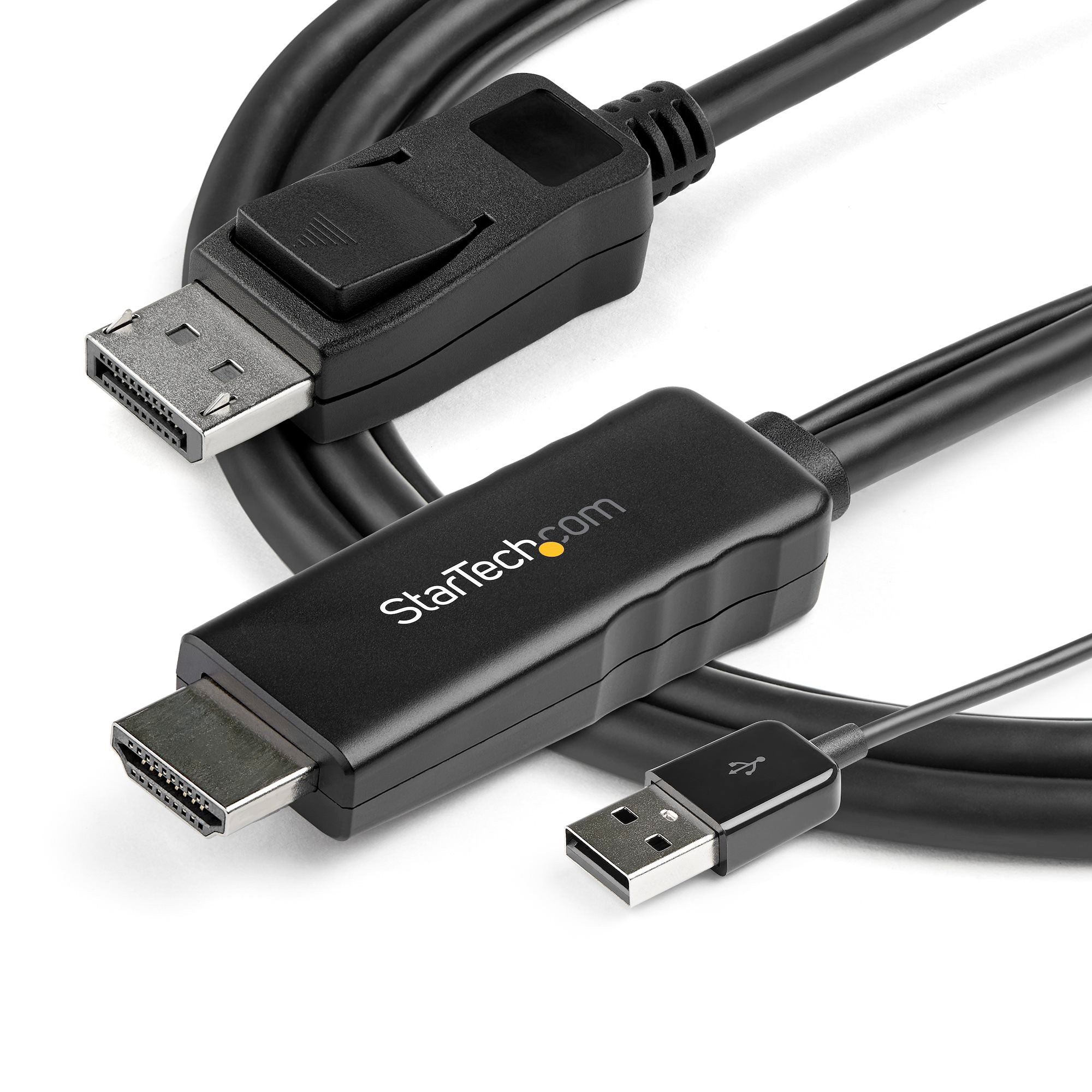 This HDMI to DisplayPort adapter cable with USB power lets you connect an HDMI video source, such as your laptop, desktop, Blu-ray™ player, or camera, to a DisplayPort monitor or projector without the need for additional video cables.