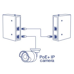 Extends a single PoE/PoE+ network connection up to an additional 100m (328 ft.) for a remote PoE or PoE+ device installation
