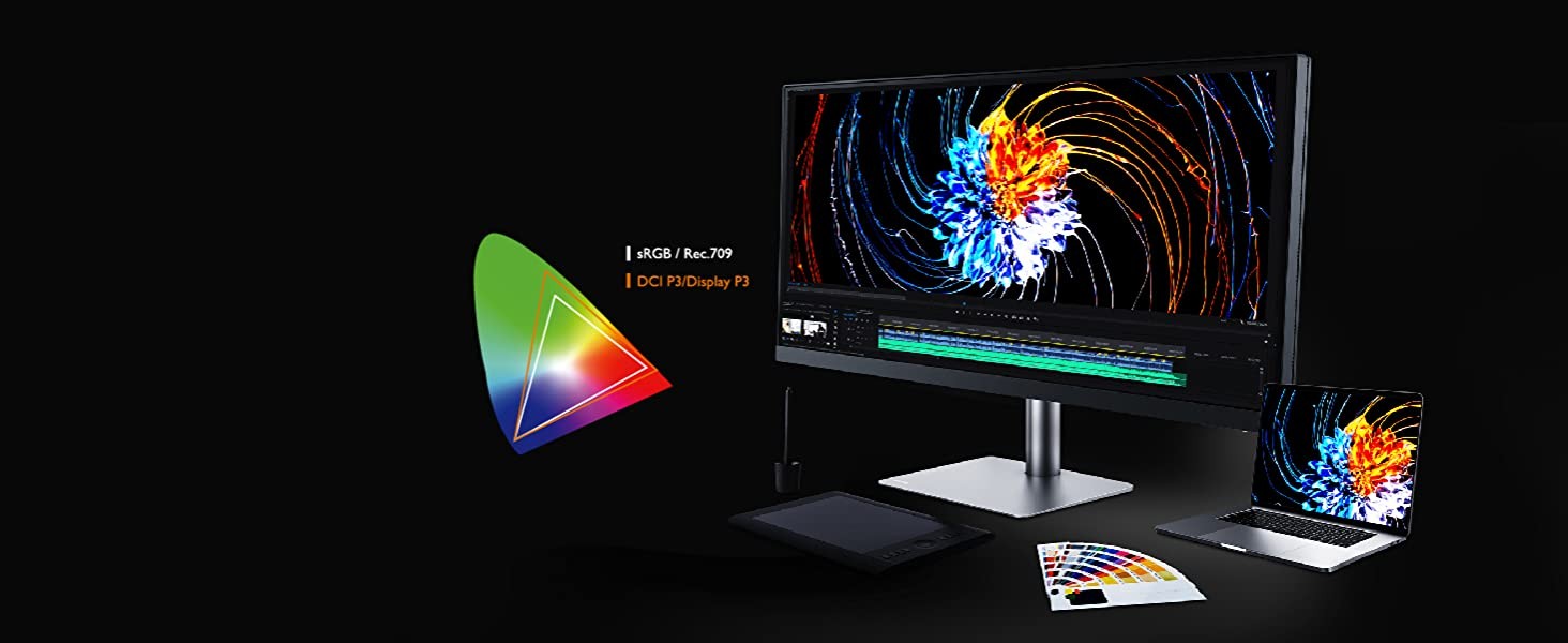 PD3420Q covers 98% Display P3 and DCI-P3, and 100% sRGB and Rec.709 with impressive Delta E ≤ 3.