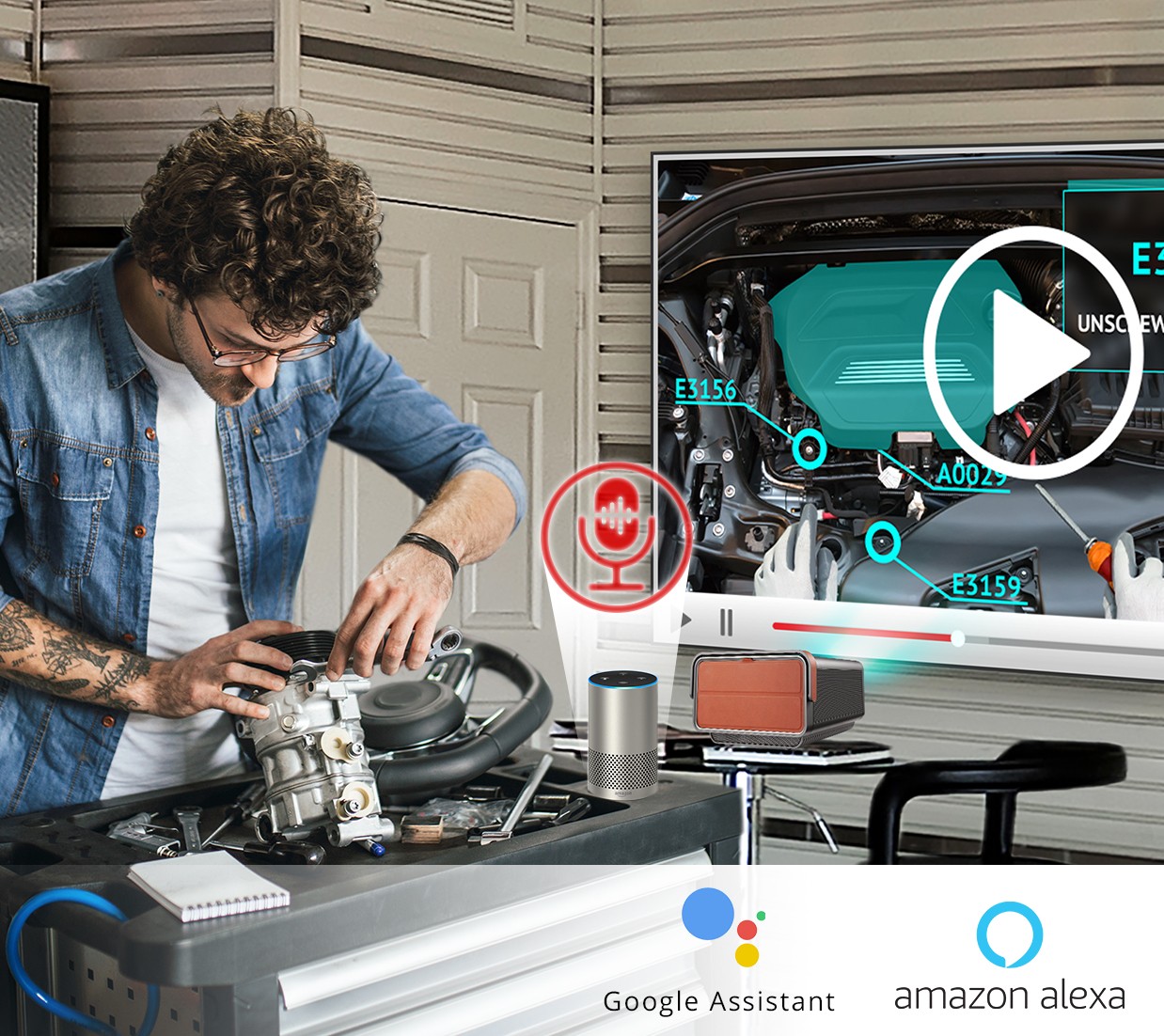 Convenient voice control via Amazon Alexa or Google Assistant can power the projector on and off, switch source, control volume, and more.