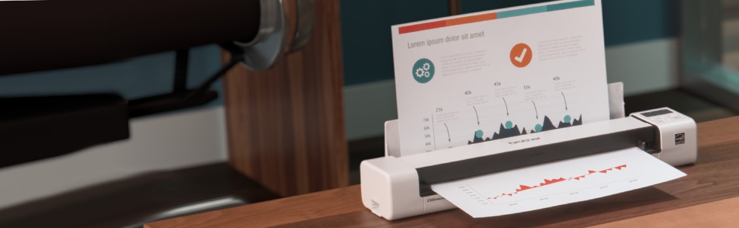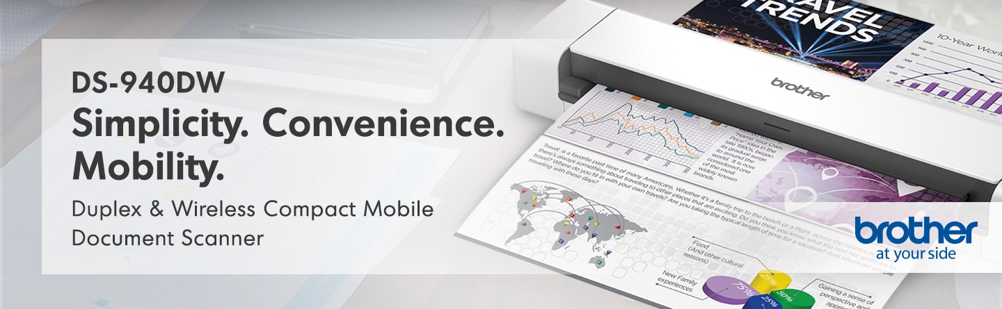 Open the DSD (Desk Saving Design) scan lid on the Brother DS-940DW document scanner to reduce the space needed to operate the scanner. The Brother DSD saves up to 11 inches of desk space(1).