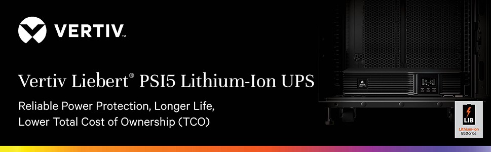 The Vertiv Liebert PSI5 Lithium-Ion UPS provides power protection for critical equipment in edge and distributed IT applications. Lithium-ion batteries provide more than double the useful life of traditional VLRA batteries, resulting in up to 60% TCO savings or more. The UPS uses AVR technology to further extend battery life and offers 2-4 times the runtime of comparable UPS systems at full load. It also comes with a rotating LCD display to allow both rack and tower configurations. This UPS includes: