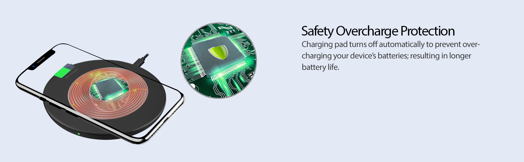 Charging pad turns off automatically to prevent overcharging your device’s batteries; resulting in longer battery life.
