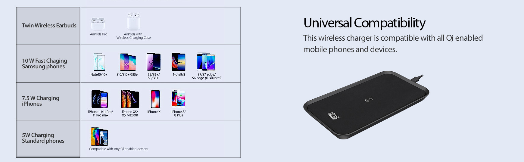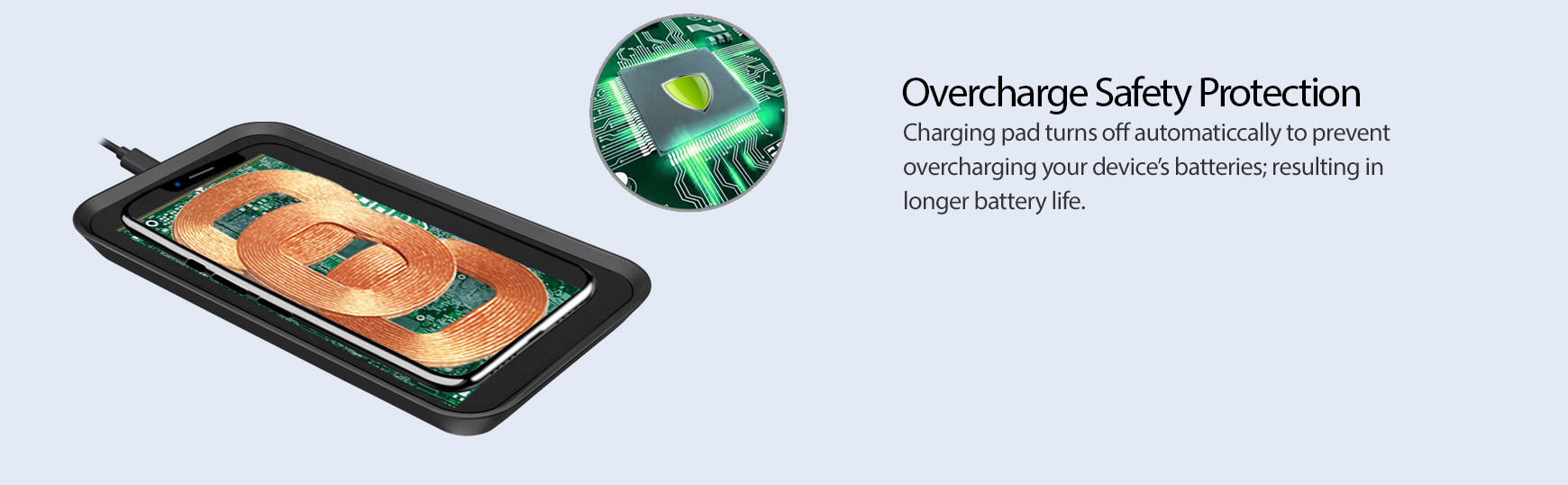 Charging pad turns off automatically to prevent overcharging your device’s batteries; resulting in longer battery life.
