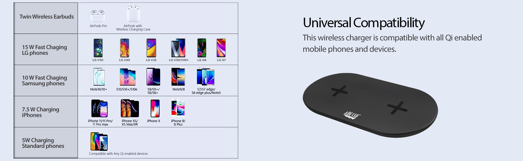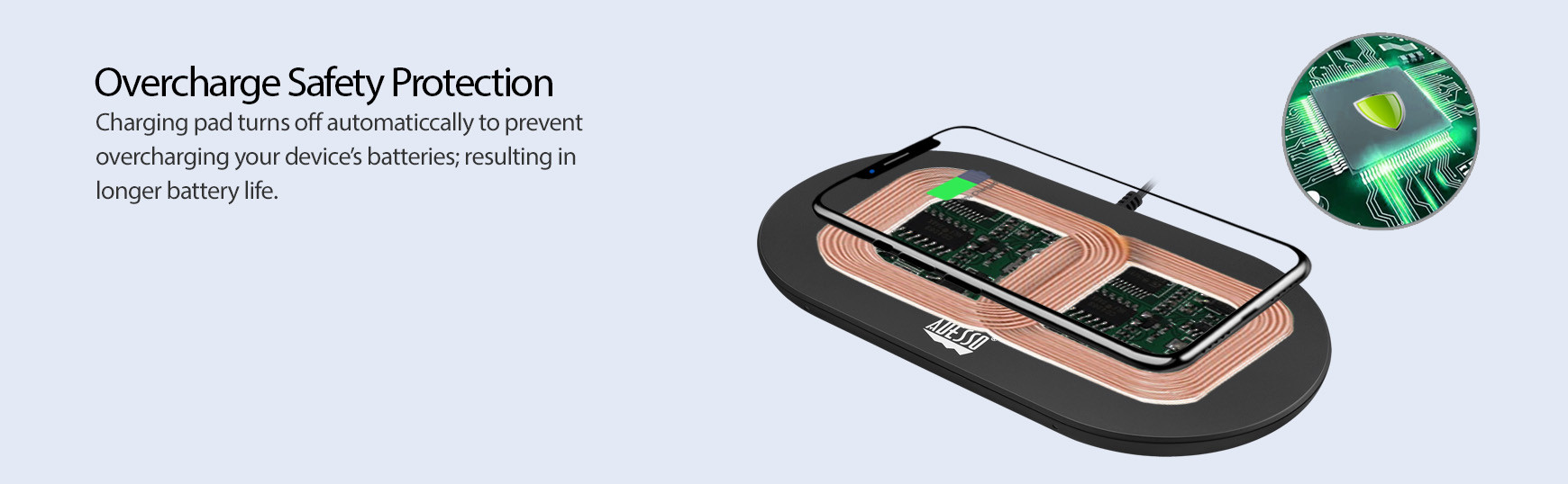 Charging pad turns off automatically to prevent overcharging your device’s batteries; resulting in longer battery life.