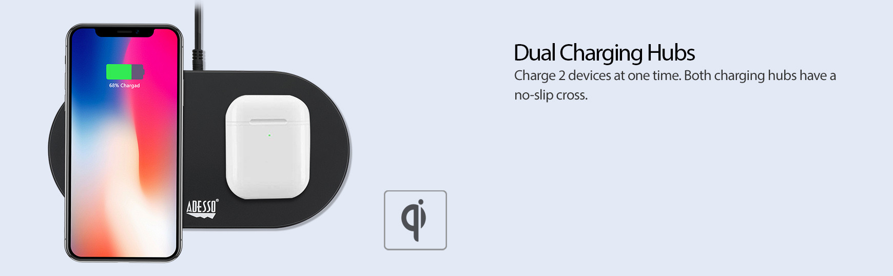 Charge 2 devices at one time. Both charging hubs have a no-slip cross.