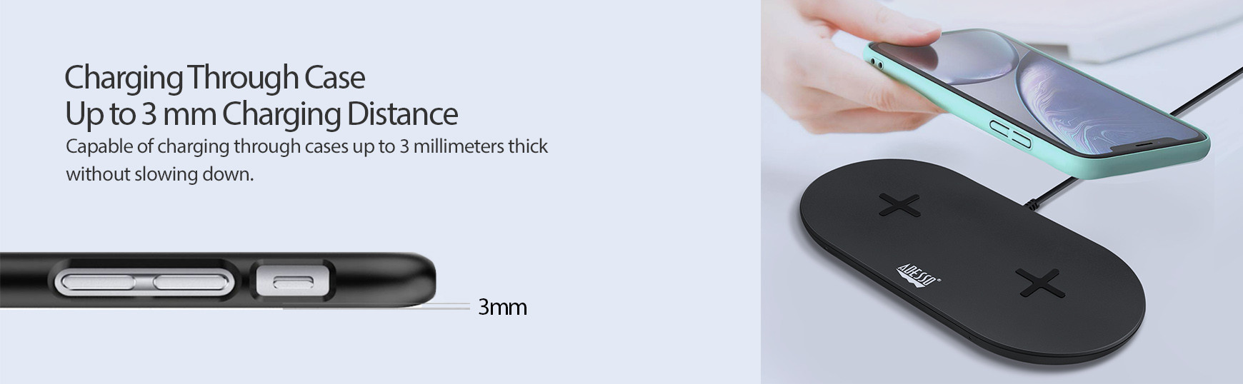 Capable of charging through cases up to 3 millimeters thick without slowing down.