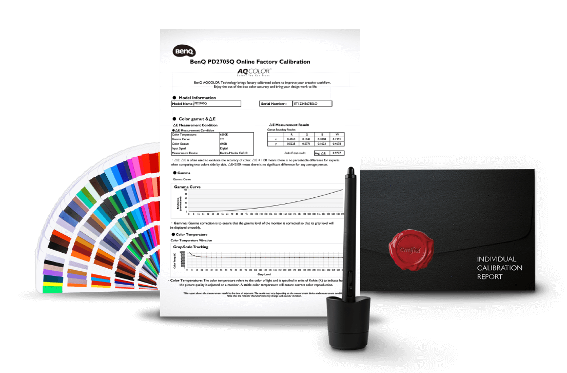 Have confidence in your color. Each BenQ PD2705Q arrives factory-calibrated with its unique calibration report.