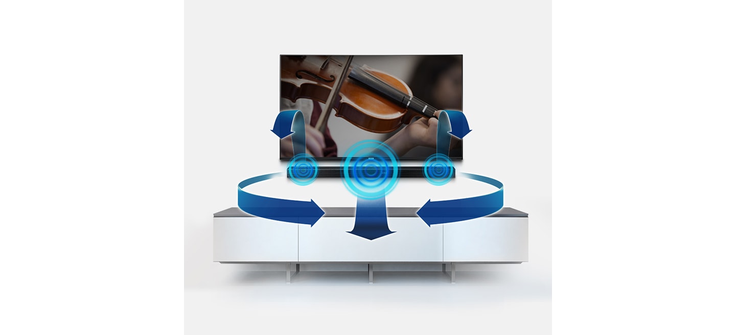 Surround Sound Expansion expands the listening area both sideways and up to emanate even and high quality sound. Now you can enjoy great sound with immersive surround effects.