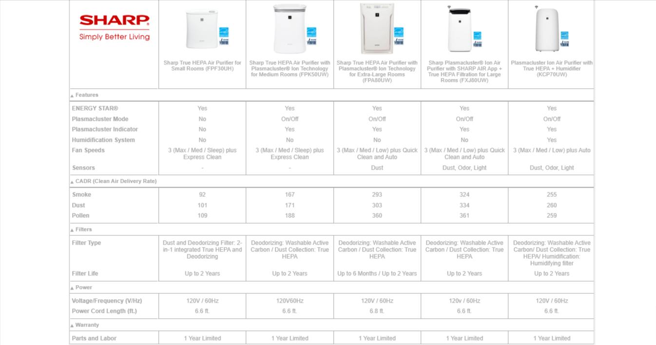 Raise your expectations of an air purifier and ensure a lower total cost of ownership over the years. Other brands may suggest replacing the filters every six months; that can really add up! The SHARP long-life True HEPA filter lasts up to 2 years, depending on the environment. Permanent, washable microscreen panel included.